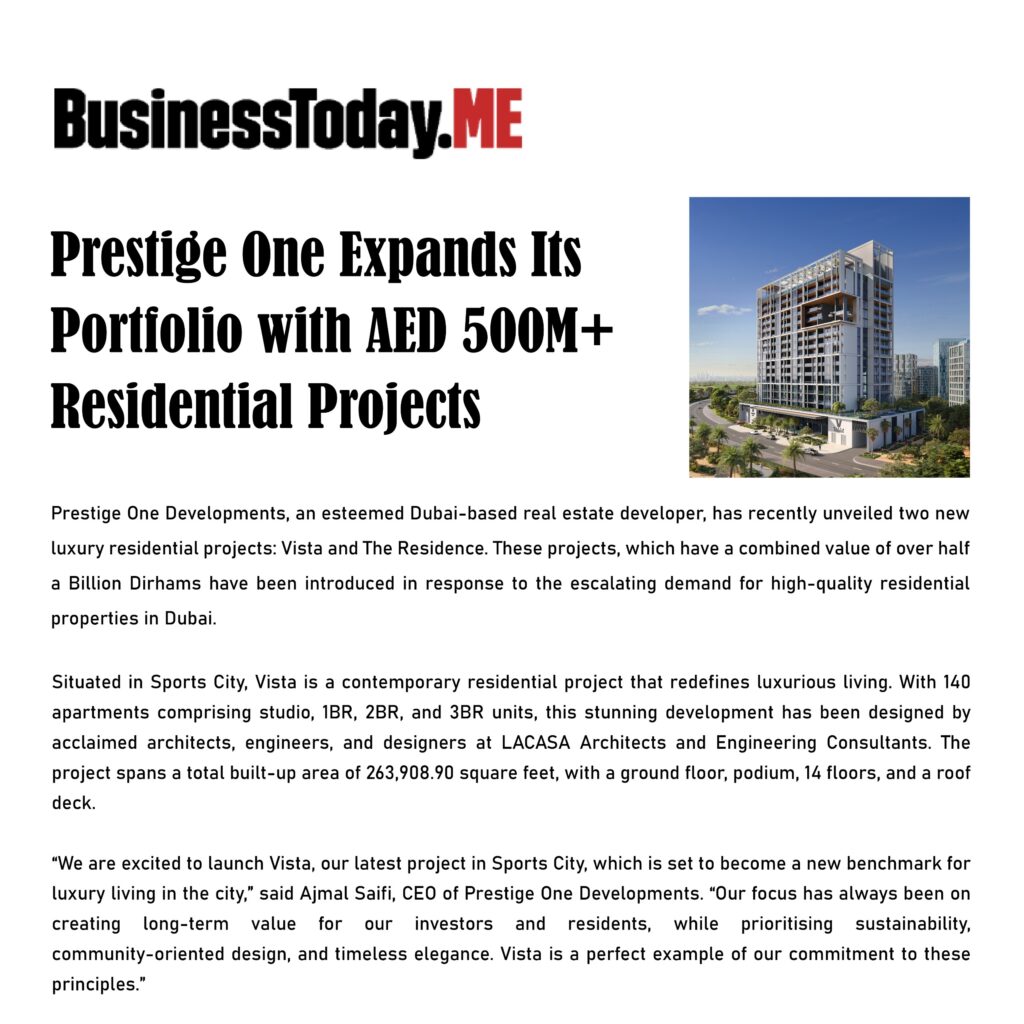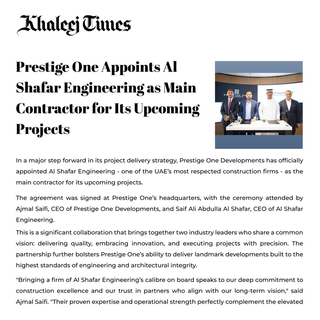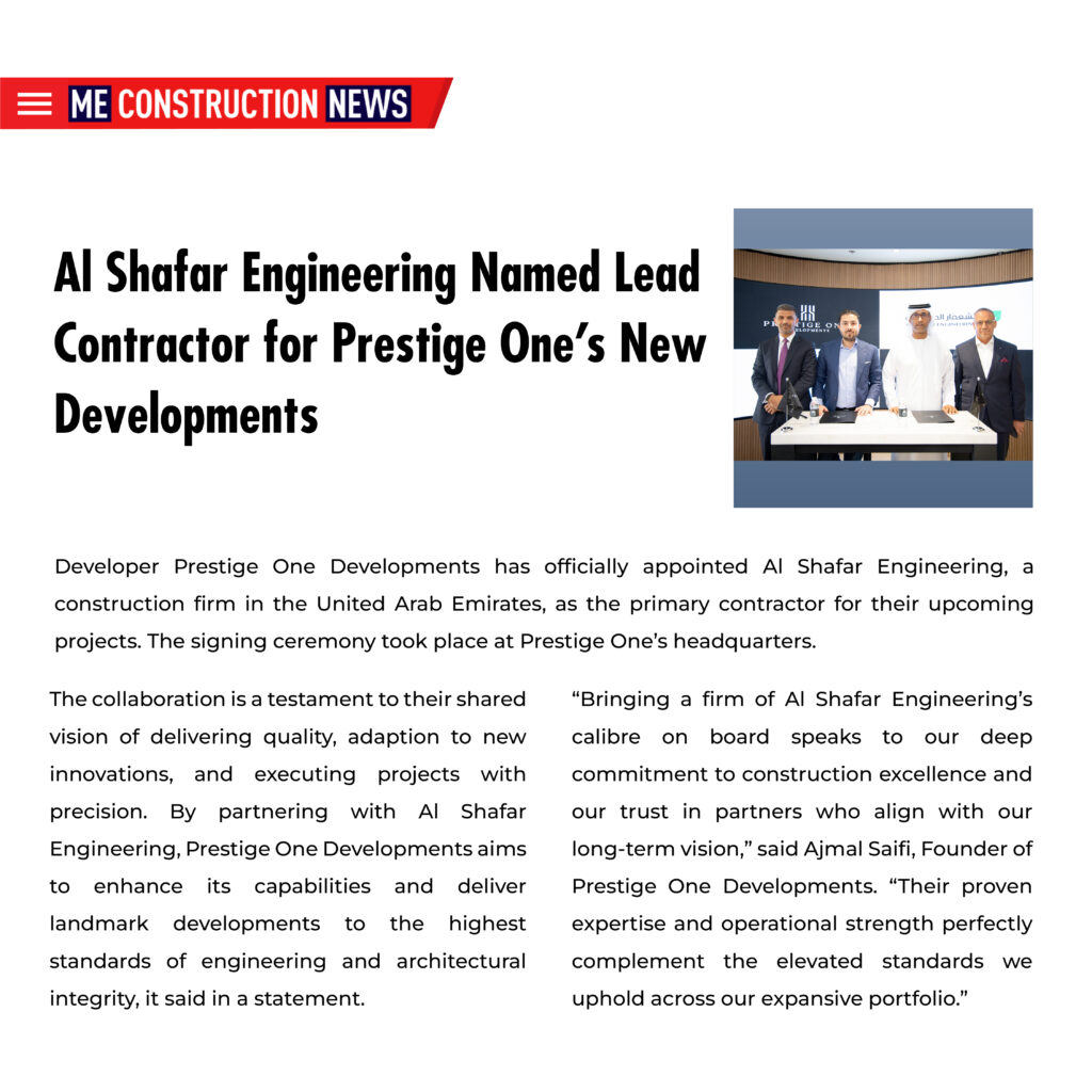 Prestige One Developments journey is marked by continuous growth and a dedication to creating spaces that leave a lasting impact. From strategic partnerships to landmark developments, Prestige One consistently pushes forward, shaping a future of distinction and success. Get exclusive insights into our milestones and the landmark achievements that define our legacy. Stay informed with all the news and developments as we push boundaries and set new standards in the world of real estate.